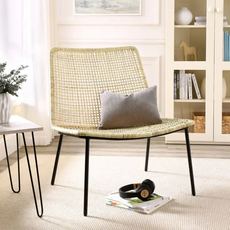 · MODERN: With clean lines contrasted perfectly by its round edges, our rattan chair is the ideal modern accessory for your interior space. Finished with thin angled legs, this chair not only has a sleek, minimalistic look but also provides a stable structure