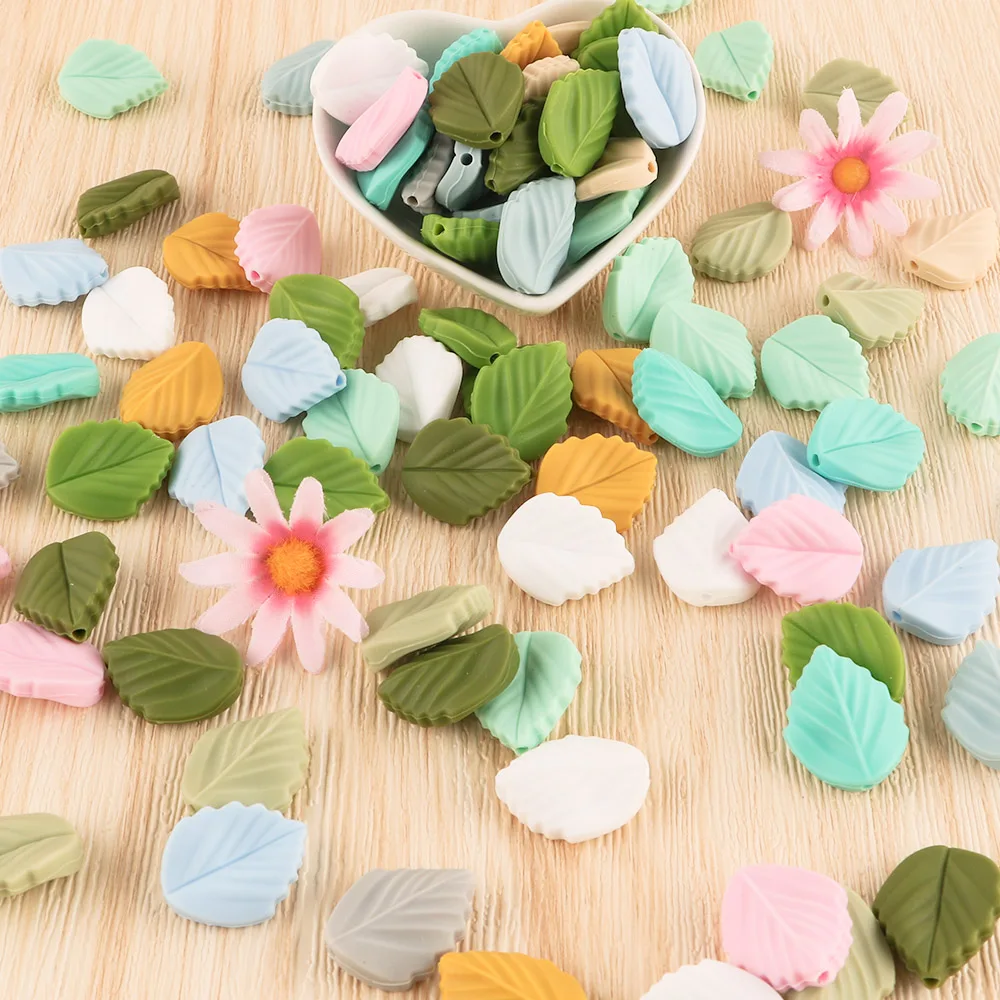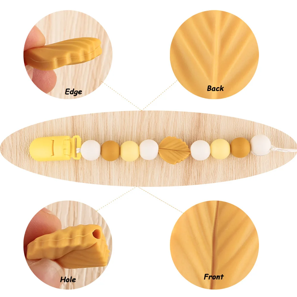 Kovict 10PCS Leaf Silicone Beads Leaves Baby Teething DIY Food Grade BPA Free Chew Nurse Gift Silicone Teethers Baby Accessories