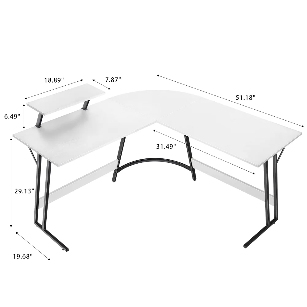 -Effectively improve space utilization: The large L-shaped desktop can place various office and leisure items. The corner design allows you to choose the position of the table more freely, saving more space. There is enough space at the bottom of the table for the legs to rest or place the computer case.